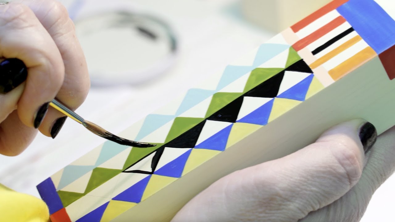 An interest in South American and Eastern European art led Girard to create the first wooden dolls for his own home. The collection in production today contains an irreverent range of animal and human-like characters. Doll No. 9 appears as a slightly cantankerous being with a rather beautiful colour scheme.