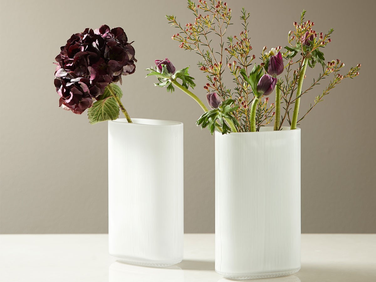 Crafted from mouth-blown glass, available in two sizes and clear or opal finishes, the beautiful vase is defined by a structure of fine grooves on the side and bobbles on the bottom. A tactile design that embodies high quality and timeless elegance, the vase can act as a stylish companion to your favourite flower and plant arrangements. Perfect for placing in the centre of a dining table, or for resting on a windowsill or side table, the Arctic Vase boasts an exclusive design from an exciting era in the history of glassware design.