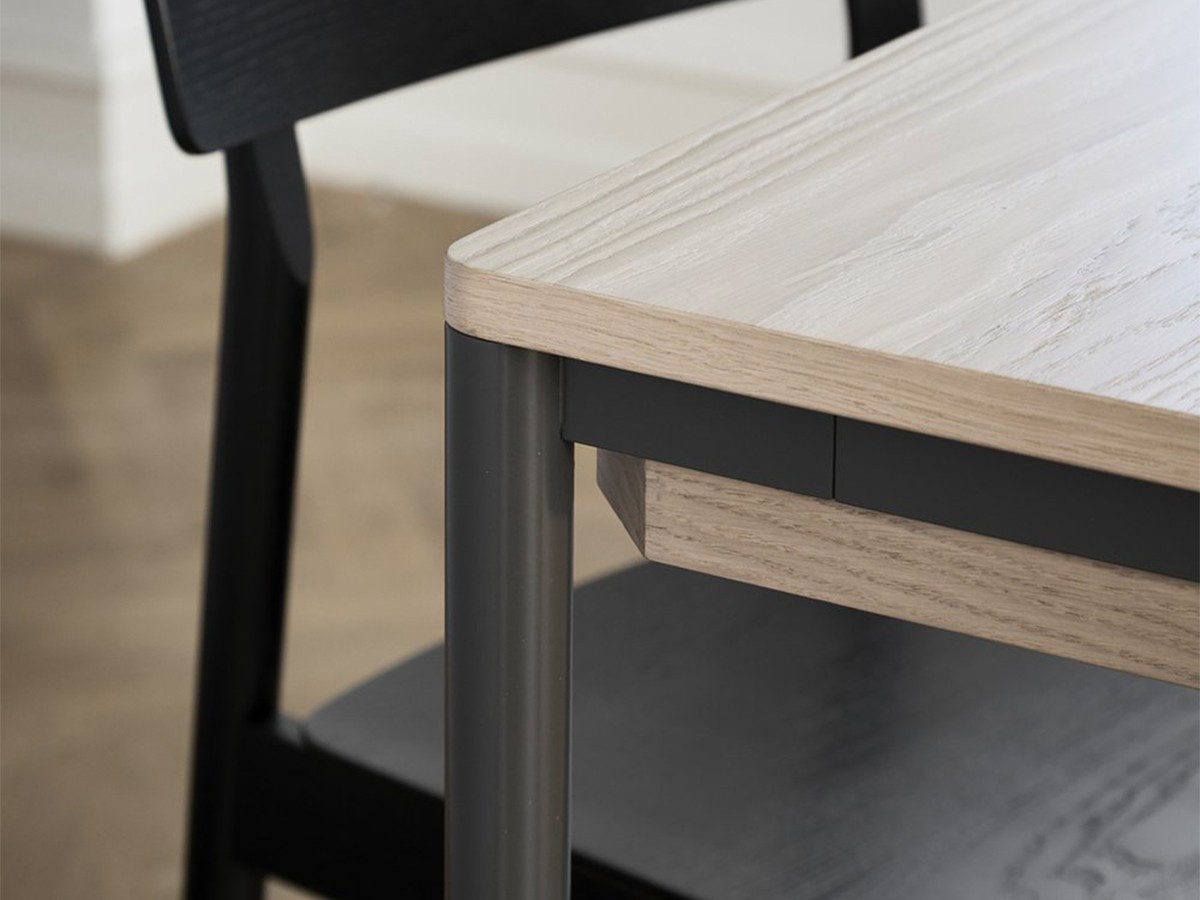 Piezas, meaning pieces in Spanish, refers to the seamless construction of the dining table. Influenced by how intuitively Lego pieces slot together, Spanish designer, Cenal looked to emulate the functionality with precise joints and proper proportions. Solidly constructed, the wooden tabletop is nestled into the striking metal frame, elevating the traditional silhouette and enhancing the detailed appearance. Storing a table leaf beneath the tabletop, the Piezas offers the possibility of extending the table, ideal for modern contexts and settings.