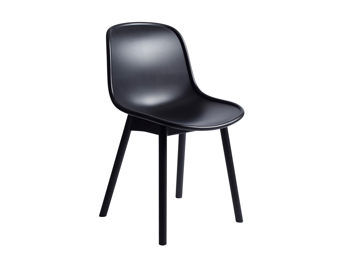 This chair has an ergonomically refined moulded plastic shell and stained wooden base. The simple, stylish design allows for use in both commercial and residential spaces.