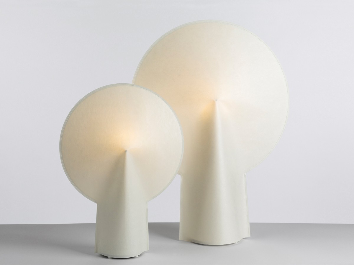 This stitched paper shade boasts elegance yet remains unimposing. Its design allows for it to be positioned close to the wall, placed on a shelf or alternatively free standing in a floor space. The Pion is durable and provides a clean, diffused light. Its aluminium frame and carbon fibre rod allows for easy assembly.