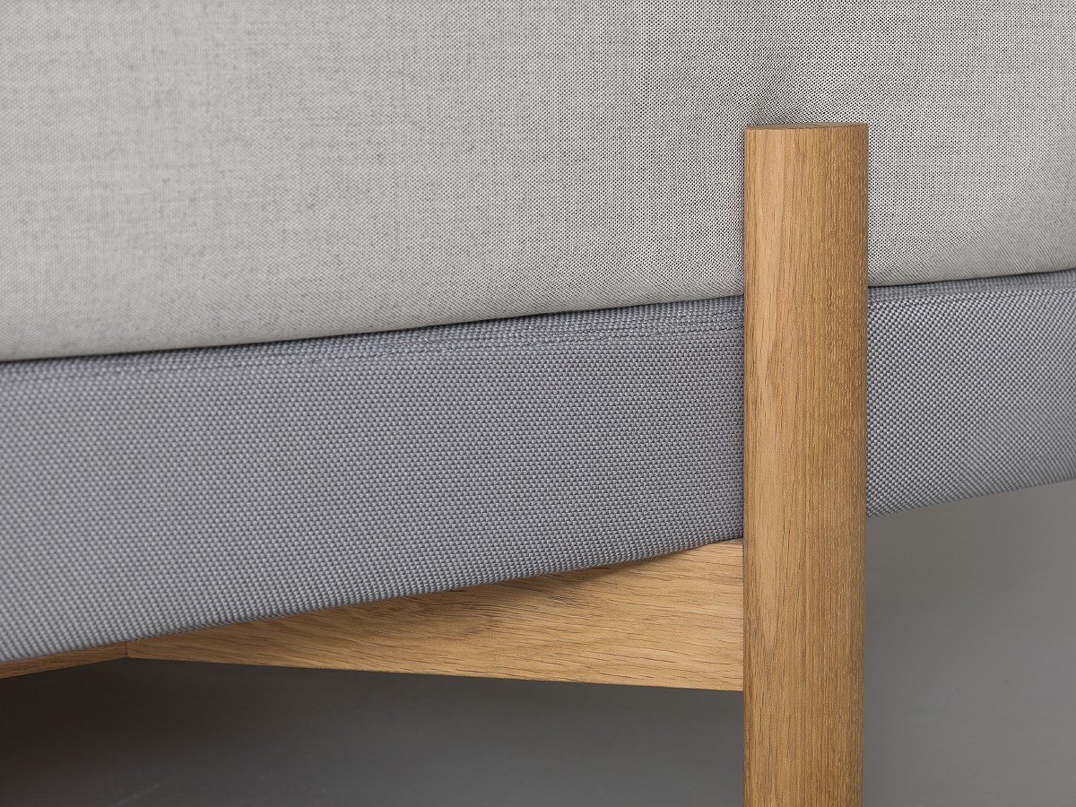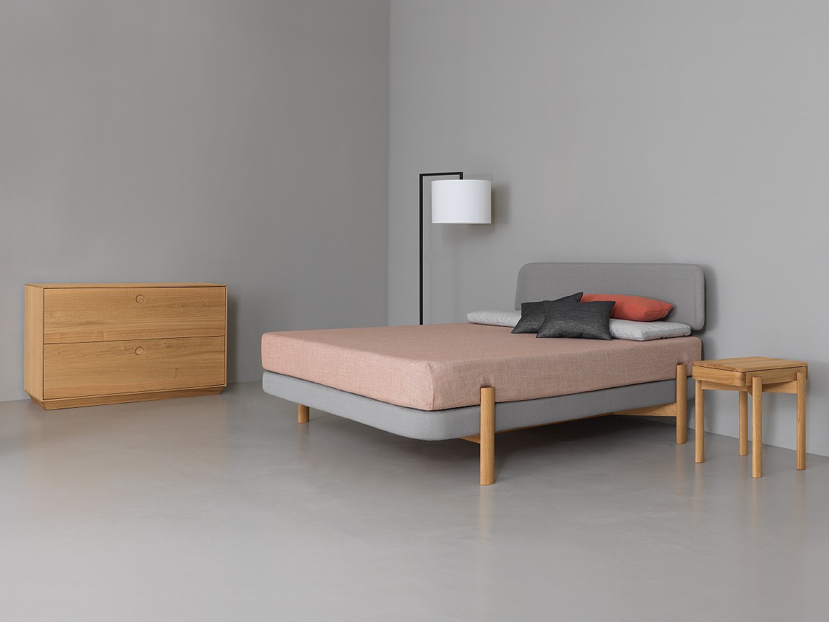 Designed in Germany and combining the luxury of a box-spring bed, the Kosi Comfort has an exceptionally light expression. Innovative in form, the spring base is laterally braced by elliptical legs and supported by a cross-beam structure. Complimented with a welcoming textured headboard, the bed provides maximum support and spatial comfort. The curved sections of the bed evoke a feeling of embrace and shelter, with the combination of the solid wood and textured soft material creating a multi-dimensional surface and visual masterpiece. Creating an atmosphere of lightness this aesthetically pleasing bed is not only a key feature to any bedroom decor but also a durable, ergonomic and timeless piece of furniture.