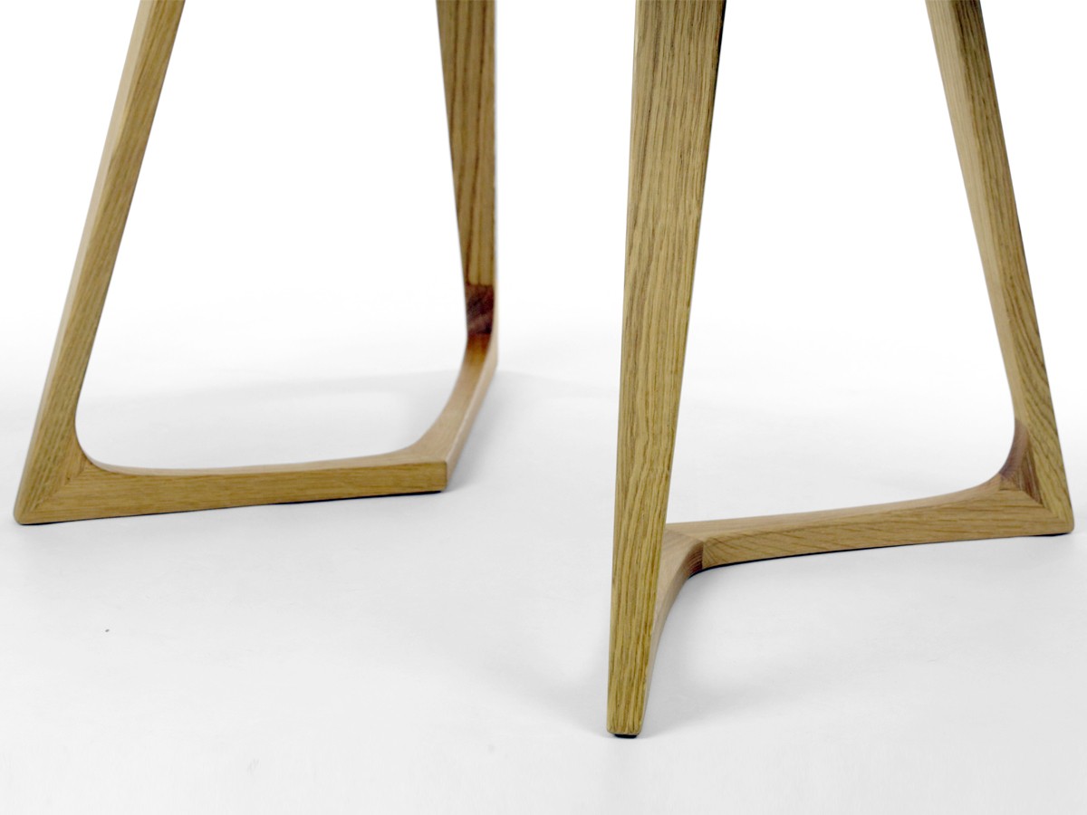 The unusual form of the table top makes you feel immediately at one with nature. You would think that the table was surrounded by water and that this is how it achieved its present form. The delicate but nevertheless stable support holds the specially formed wooden table top, lightweight but convincing.